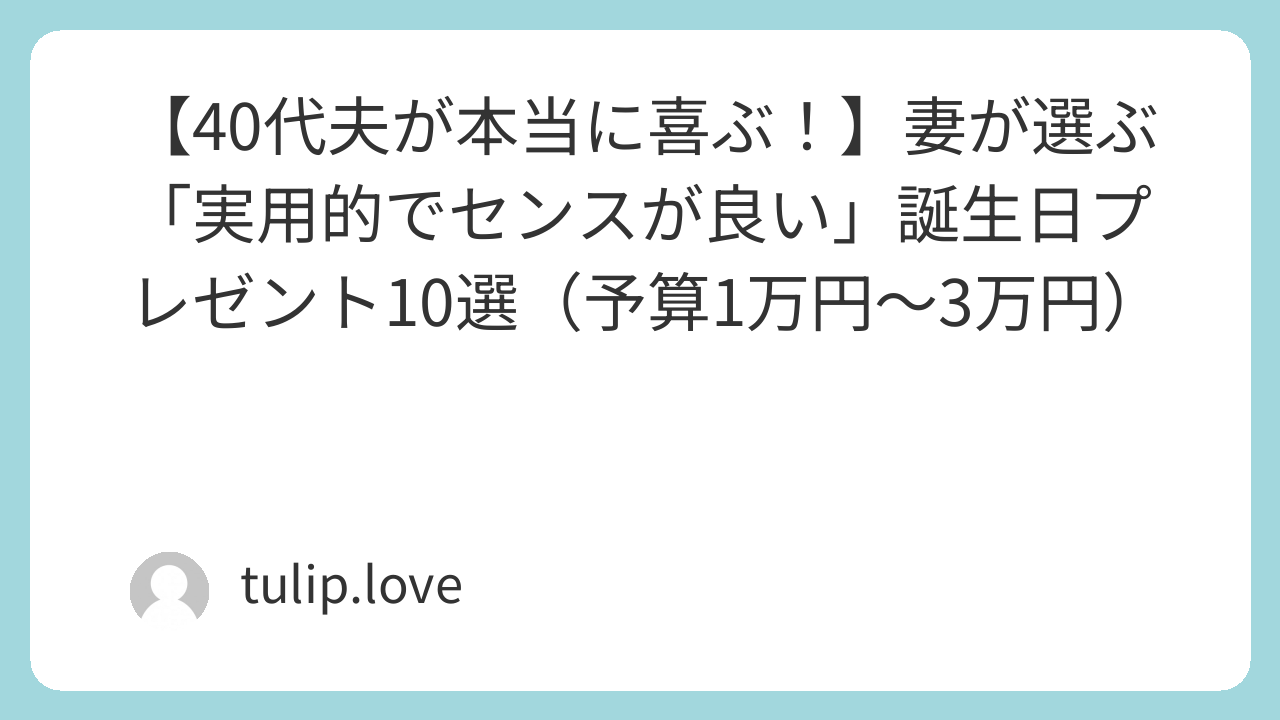 この記事では、40代の夫を持つ私が厳選した、センスが良く、贈った妻の株も上がる実用的なプレゼントを10個ご紹介します。